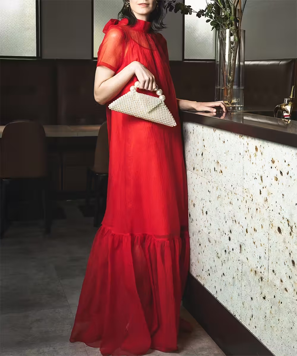 鮮やかなレッドカラーが視線を集め、特別なシーンにぴったり。