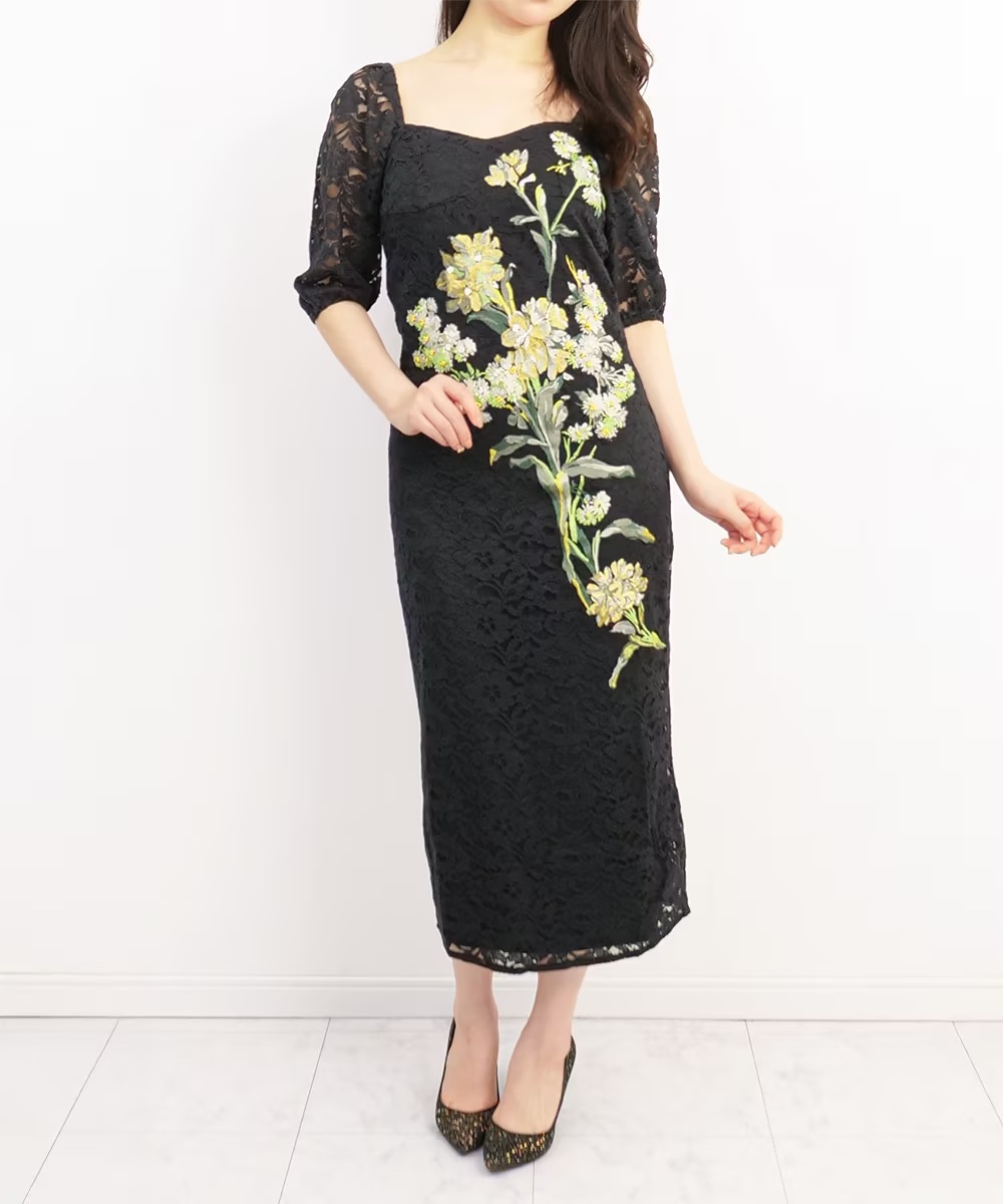 派手すぎず、でもしっかりと印象に残る—— そんな願いを叶えてくれる、繊細なフラワーレースのドレス。